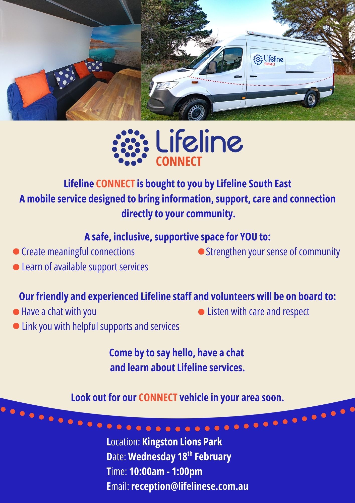Check back to see what our upcoming local events are and where to find our Lifeline Connect Van.